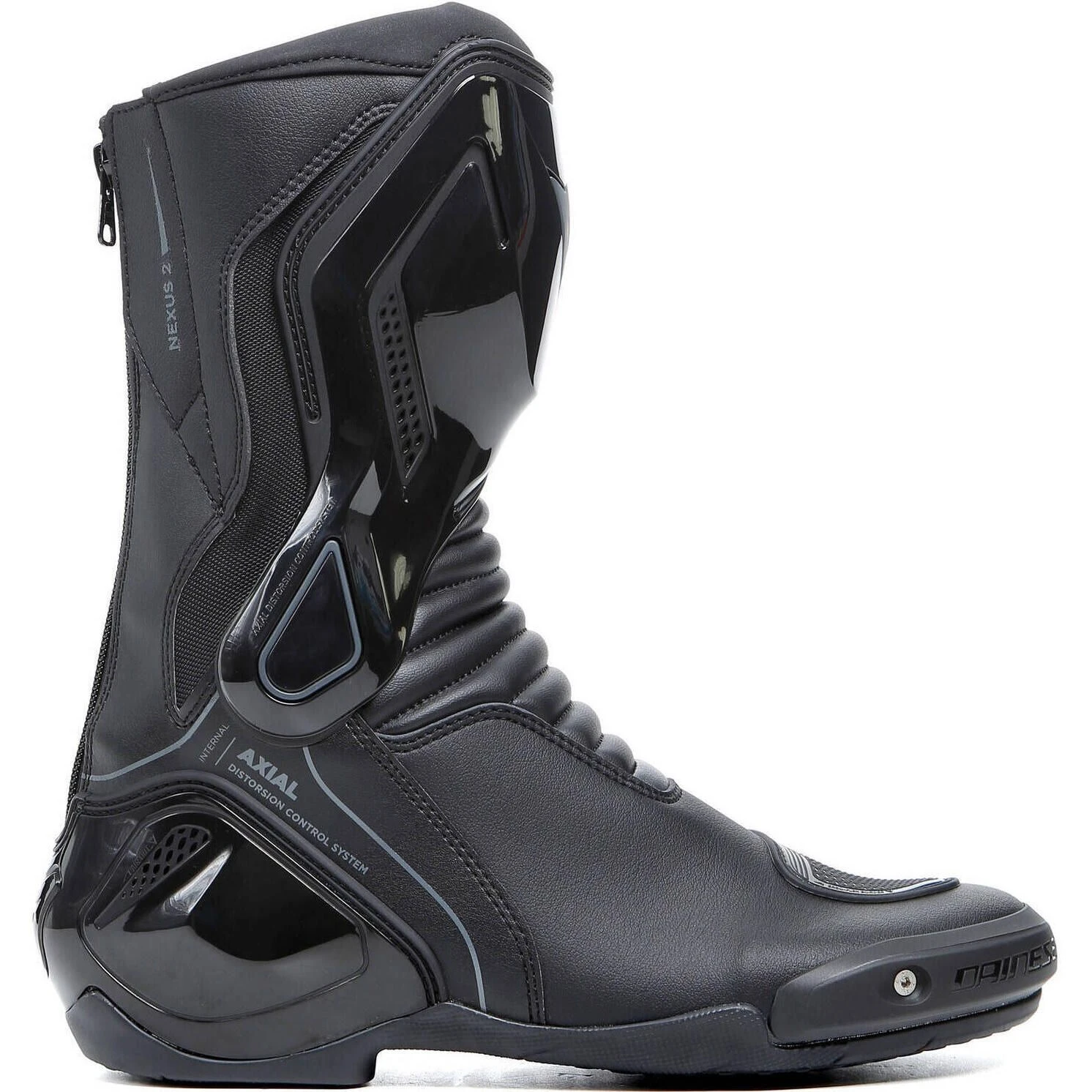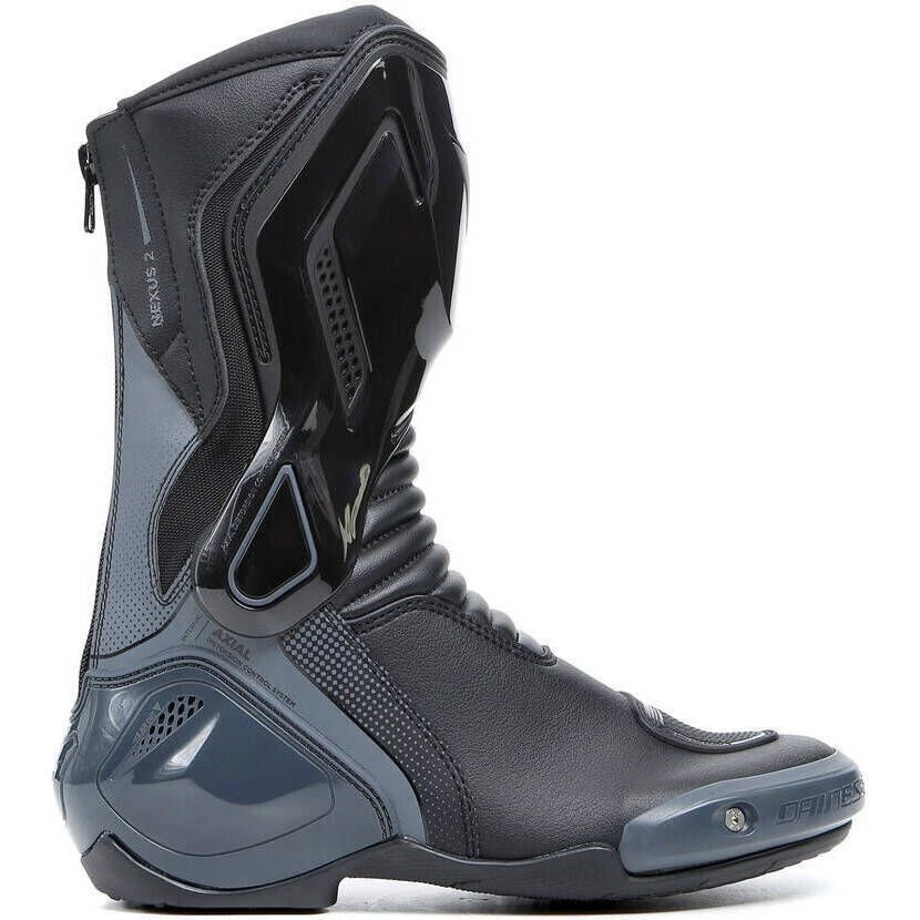 The Dainese Nexus 2 sport motorcycle boots are made of microfiber and D-Stone, with a nylon insert at the heel.