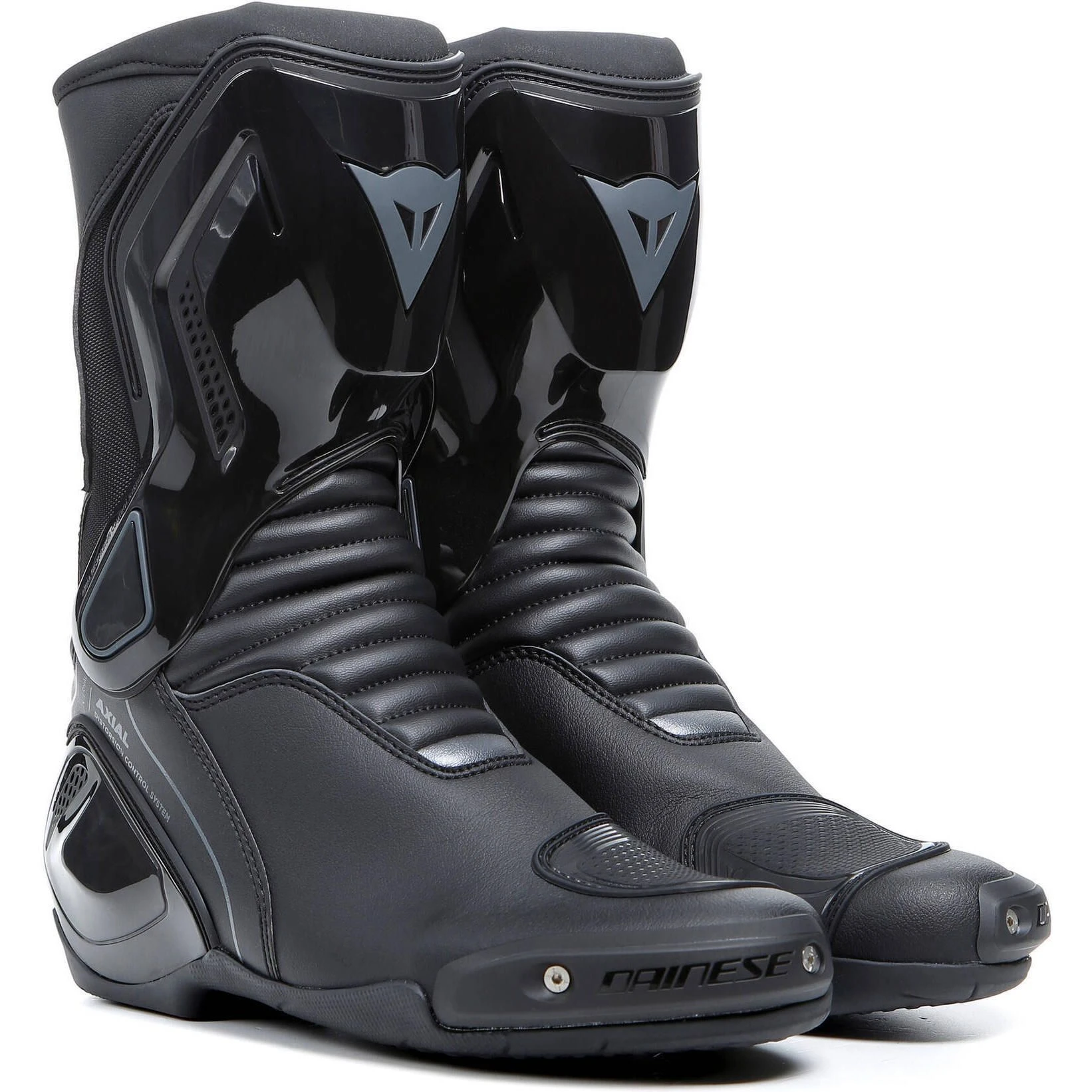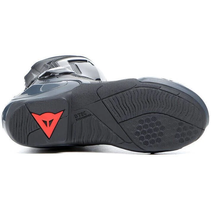They are equipped with replaceable thermoplastic sliders, the exclusive Dainese Axial Distortion Control System, and nylon inserts on the heel to guarantee high levels of protection, maximum comfort, and lightness.
