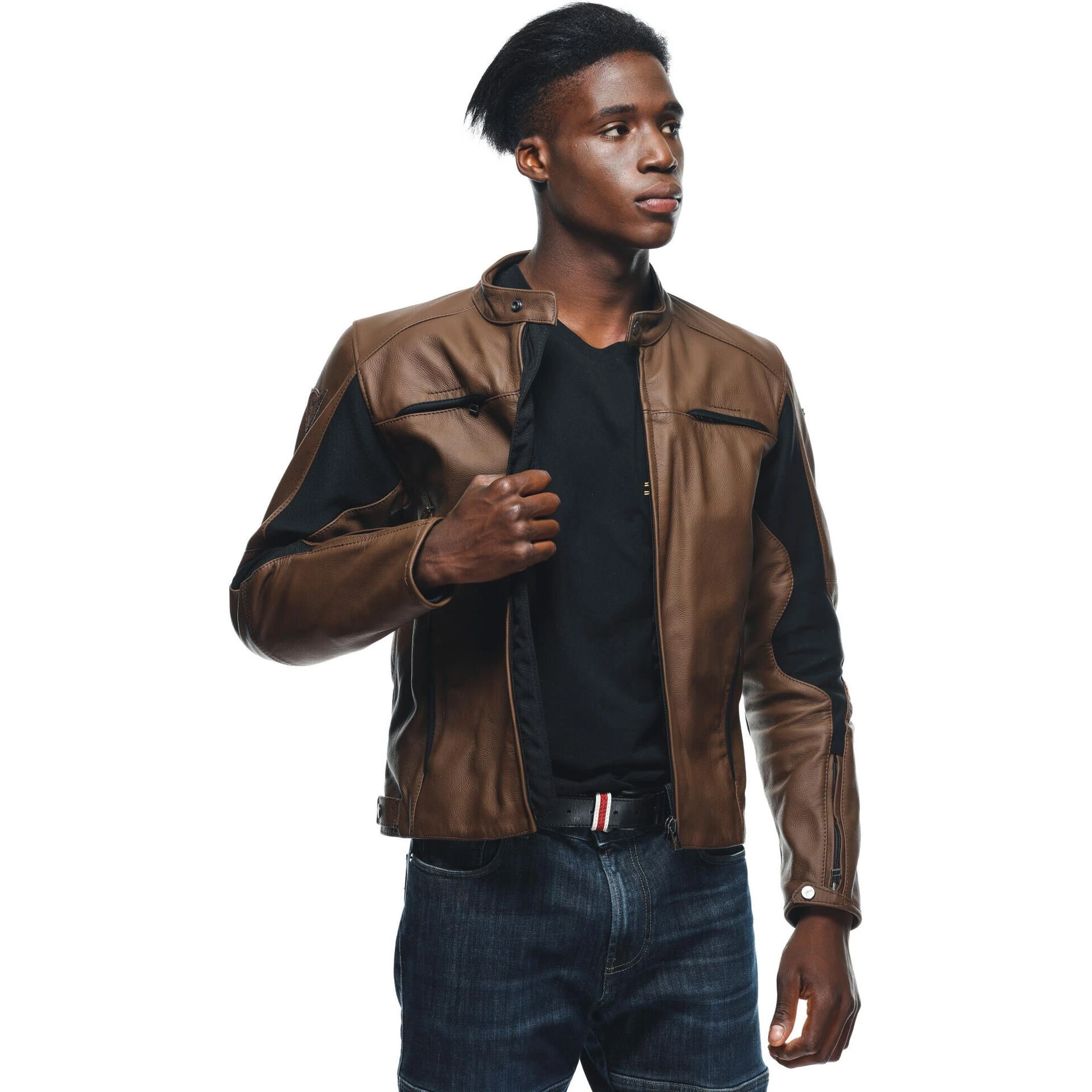 Equipped with a rear pocket to insert a back protector, pockets with side zippers, snap buttons on the hips and cuffs to adjust the fit, and air vents on the chest to optimize the temperature even during hot seasons, the Dainese Razon 2 leather motorcycle jacket combines urban-inspired aesthetics and extreme protection guaranteed by Pro-Armor, which is ultra-resistant, soft, removable and EN 1621.1-certified.