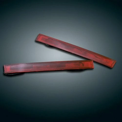 These stylish saddlebag side lights will replace the OEM reflectors as well as all of the existingaftermarket side lights. Now comes standard with 6 mini-lights, plus an all-new lens with improved bezel. Bulbs are mounted on circuit boards and are easily changeable. The lens is also easily removed with backside mounted screws.